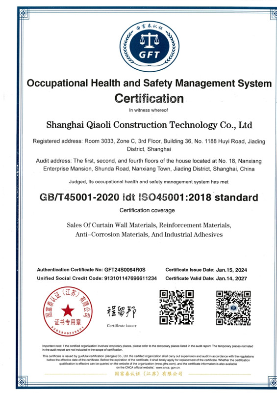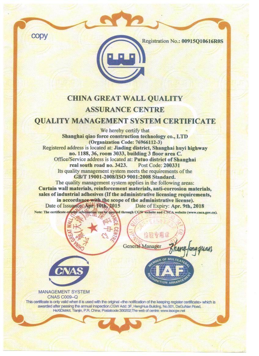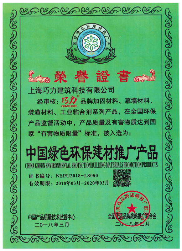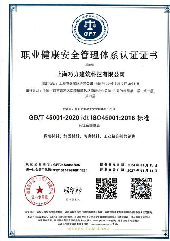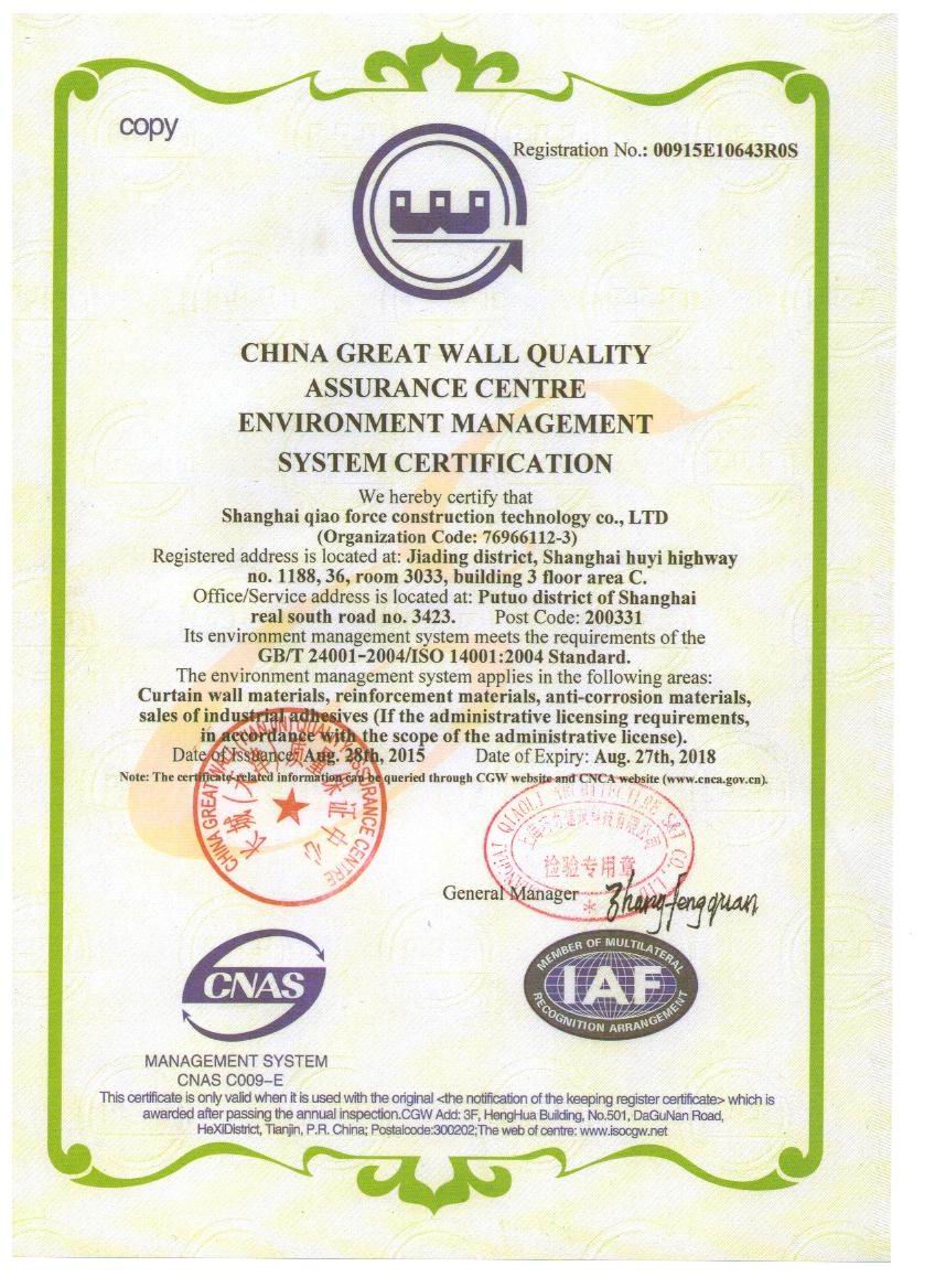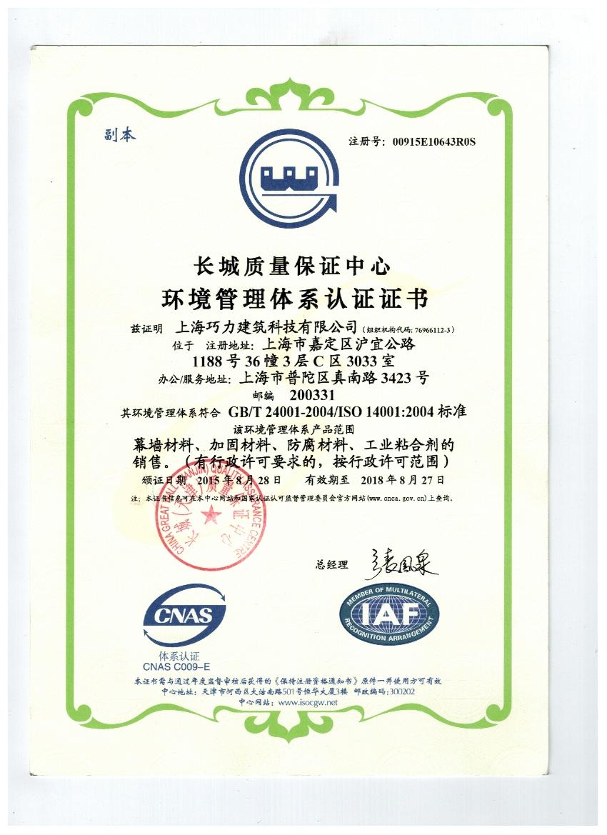 上海巧力建筑科技有限公司是一家從事膠粘劑、纖維復合材料、建筑錨栓和新型特種砂漿的研發、生產科技技術企業。公司已通過ISO14001環境管理體系認證。