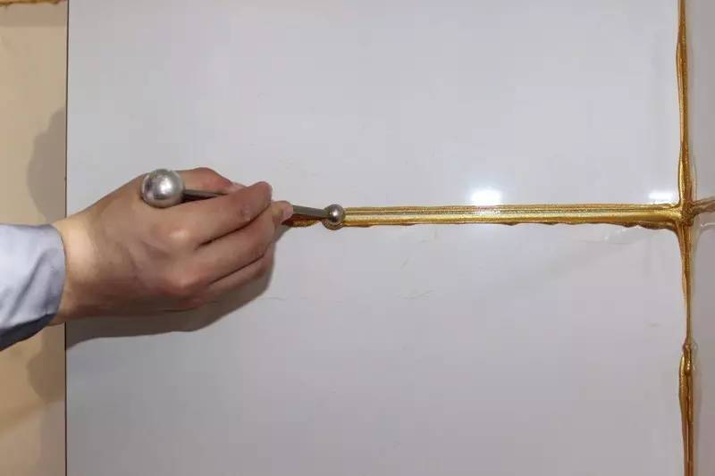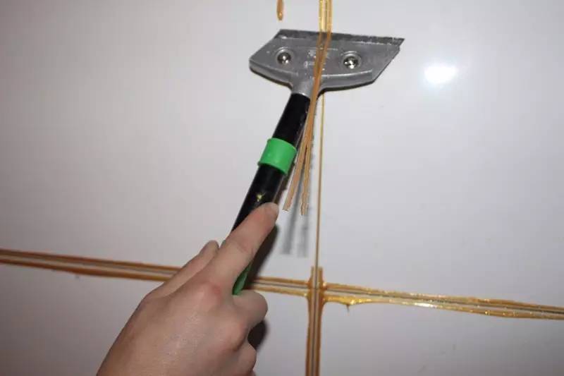 2、用板刷或者美工刀將瓷磚縫隙清理干凈(打美縫膠之前可貼美紋紙)。