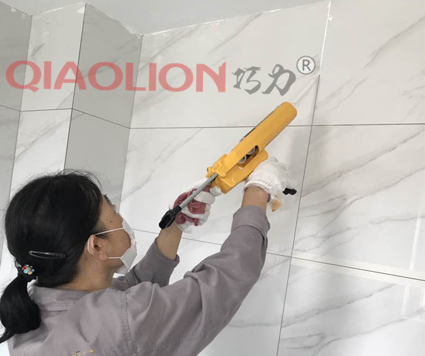 對瓷磚縫隙進行填充粘接